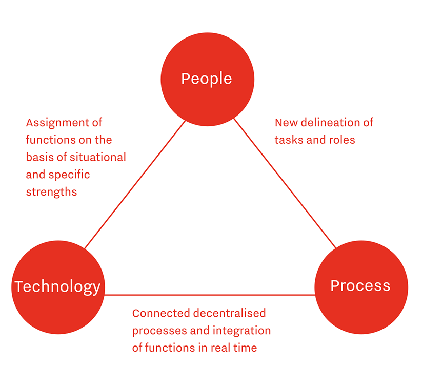 De uitdaging is om de samenwerking tussen mens, technologie en proces effectief vorm te geven.
